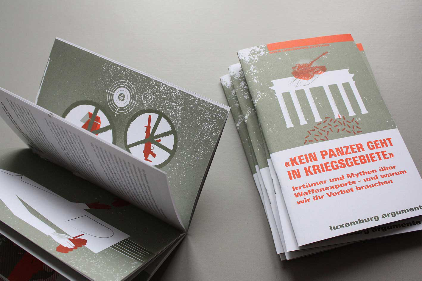 Im Jahr 2018 entstanden die Illustrationen für die Broschüre „Kein Panzer geht in Kriegsgebiete“ aus der Reihe Luxemburg Argumente.