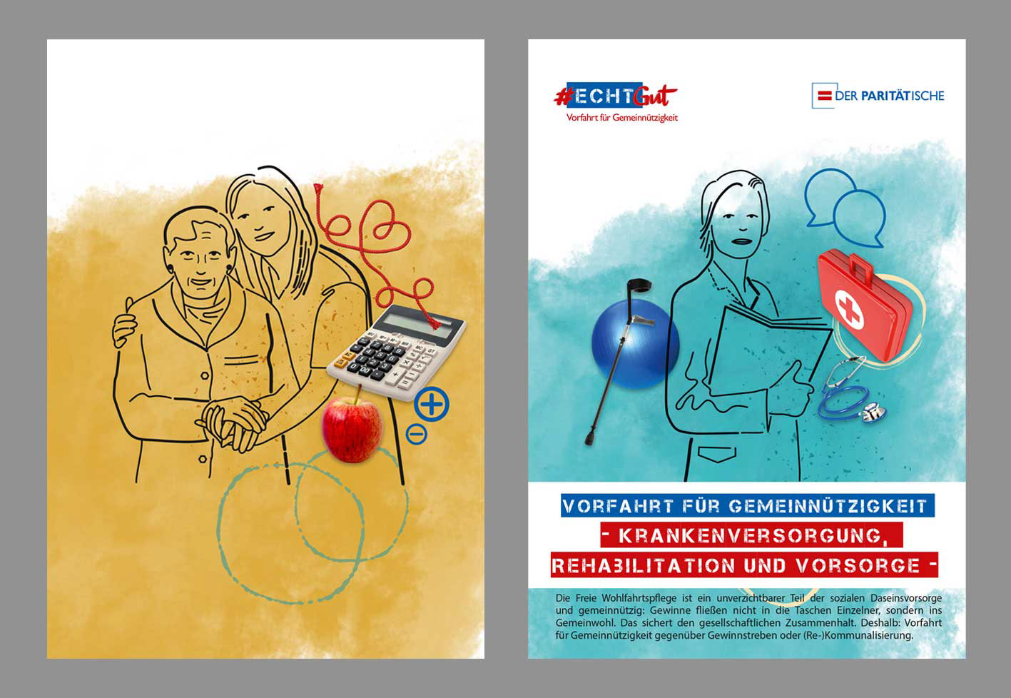 #Echt Gut – Vorfahrt für Gemeinnützigkeit – so das Motto der Kampagne des Paritätischen Gesamtverbandes zum Thema Gemeinwohl. Mit der Technik der Collage wurden insgesamt elf komplexe Themebereiche anschaulich visualisiert. Dabei steht der Mensch immer im Fokus. (Layout: Christine Maier, Paritätischer Gesamtverband)